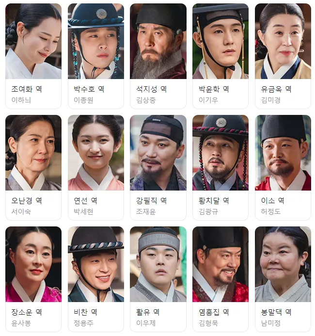 조여화 역에 이하늬 님, 박수호 역에 이종원 님, 석지성 역에 김상중 님, 박윤학 역에 이기우 님